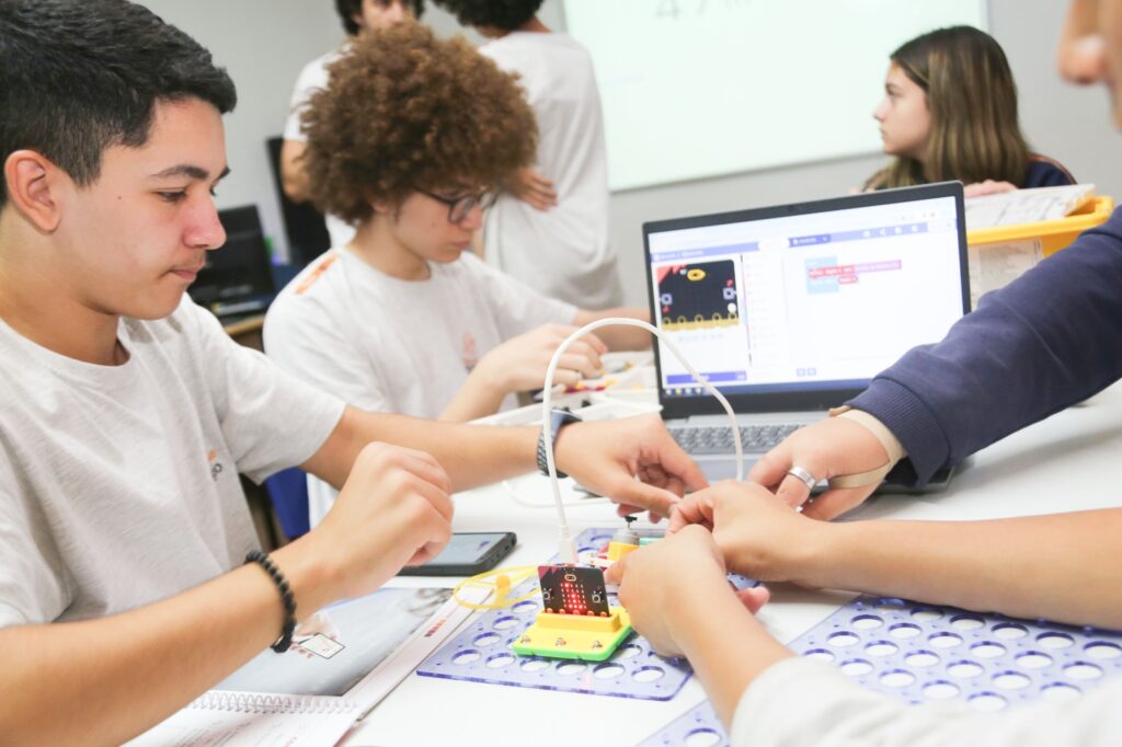 Conteúdos de mecatrônica, computação e empreendedorismo em projetos práticos.