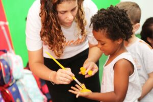 A oralidade é explorada desde cedo com jogos, histórias, experiências e muita interação